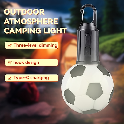 Mini luce da campeggio a LED per calcio, lanterna da tenda ricaricabile di tipo C con 3 modalità, lampada portatile per esterni per tenda da sole escursioni, decorazioni per la camera dei ragazzi,