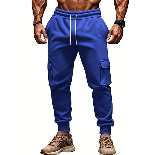 Herren Jogginghose Hose Cargo-Jogginghose Kordelzug Tasche Elastischer Bund Einfach Komfort Sport im Freien Täglich Mode Lässig Schwarz Weiß Mikroelastisch