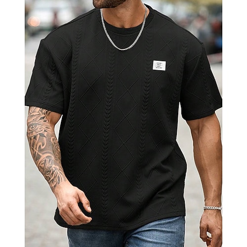 Per uomo Maglietta Camicia a Maniche Corte Manica Corta Girocollo Estate Primavera Semplice Moda Designer Essenziale Jacquard Vacanza Streetwear Uscire Nero Bianco Rosa Maglietta Top per Uomo