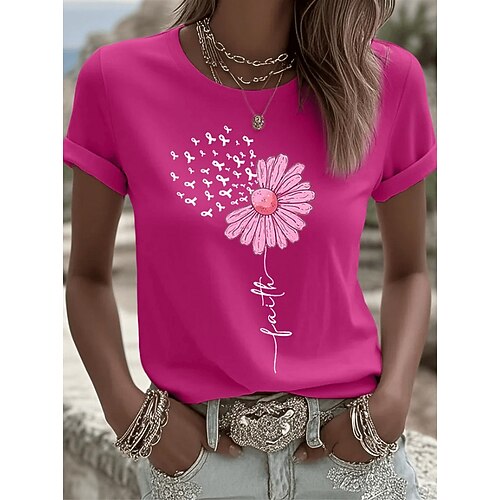 Per donna Maglietta Floreale Grafico Vintage Elegante Classico Manica Corta Girocollo Top Regolari Quotidiano Uscire Weekend Stampato Nero Bianco Rosa Rosa Estate Primavera Autunno