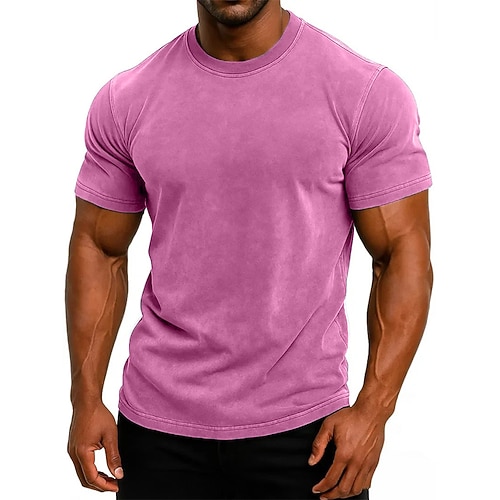 Per uomo Maglietta Manica Corta Maniche Corte Girocollo Estate Tutte le stagioni Tinta unica Vintage Moda Designer Lavato Vacanza Streetwear Casuale Nero Blu Marrone Maglietta Top per Uomo