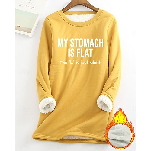 Per donna Felpa Pullover Lettera Moda Essenziale Casual Manica Lunga Girocollo Top Regolari Streetwear Abbigliamento Quotidiano Casuale Stampato Foderato in pile Nero Giallo Rosa Rosa scuro Blu