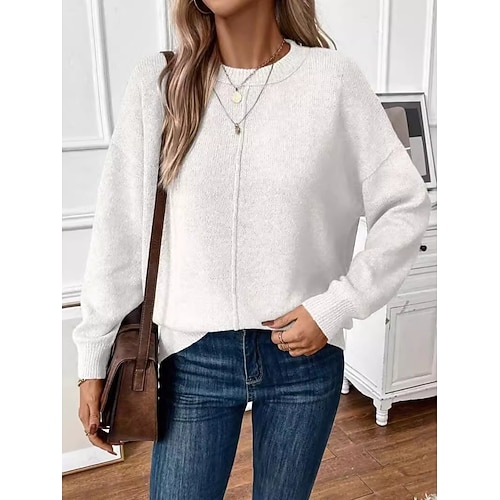 Per donna Felpa Casual Morbido Colore Puro A Coste Girocollo Lavorato a maglia Manica Lunga Top Regolari Maglia All'aperto Quotidiano Weekend Nero Bianco Autunno Inverno