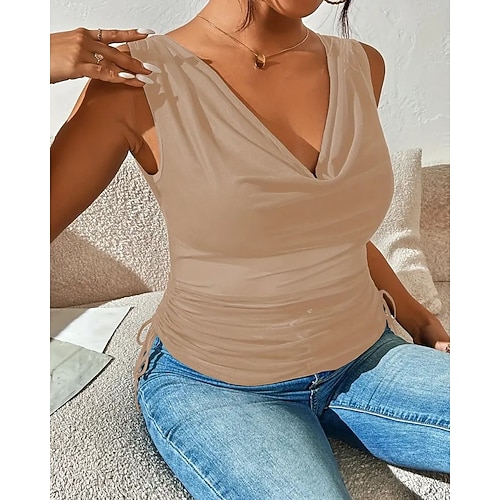 Per donna Camicia Elegant Raso/Satin Blusa Semplice Elegante Sexy Senza Maniche Scollo a V Top Regolari Quotidiano Ferie Uscire Arricciato Nero Bianco Giallo Blu marino Arancione Estate Primavera
