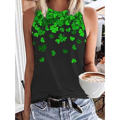 San Patrizio, festa della mamma, portafortuna, donna, grafica, bandiera, vintage, tropicale, elegante, senza maniche, girocollo, top regolari, quotidiano, nero, bianco, estate, primavera