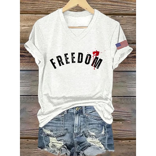 Giorno dell'Indipendenza Americana Per donna Maglietta Grafico Bandiera Americana Vintage Elegante Etnico Manica Corta Scollo a V Top Regolari Quotidiano Uscire Abbigliamento mare Stampato Blu Nero
