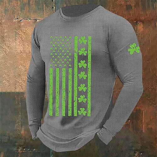 Giorno di San Patrizio San Patrizio Festa di San Patrizio Per uomo Trifoglio Camicia a nido d'ape Maglietta Manica Lunga maglietta Girocollo Camicia Sport Moda Classico Quotidiano Vacanza Feste Nero