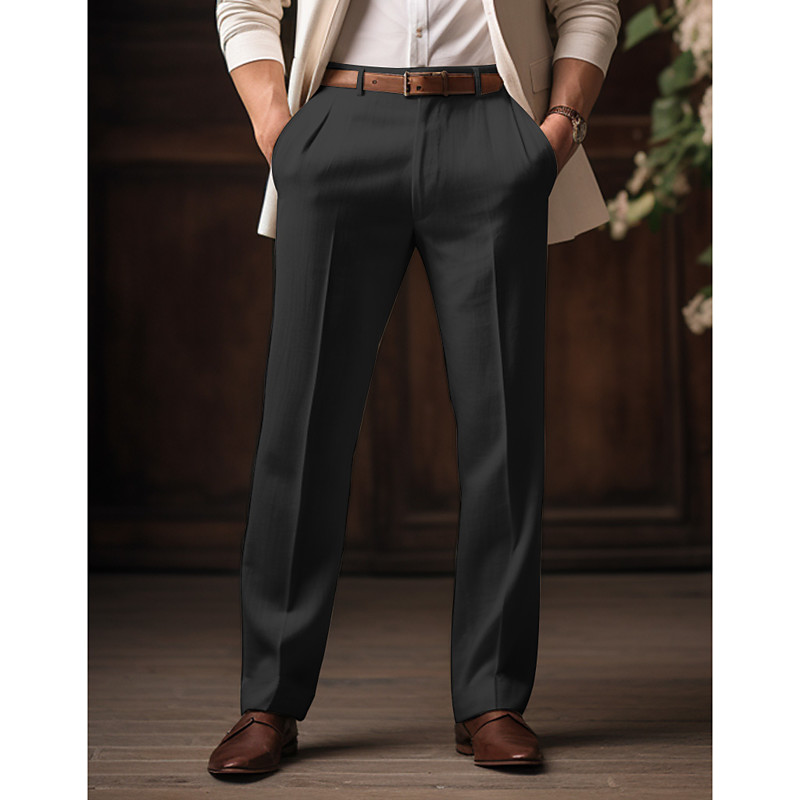 Men's Dress Pants Trousers Chinos Pocket Buttons Plain Comfort Formal Party Work Fashion Classic Style Black Dark Gray Micro-elastic