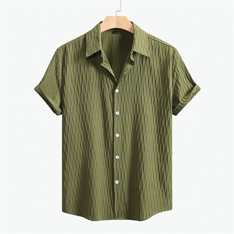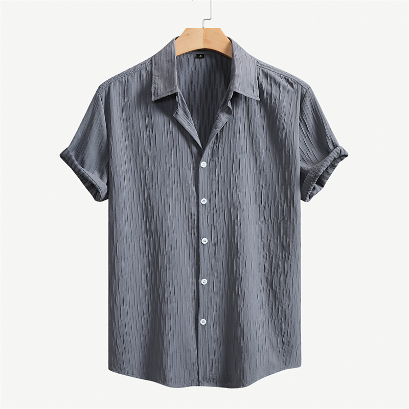 Men's Shirt Summer Shirt Casual Shirt Button Up Shirt Blue Green Gray Short Sleeve Plain Collar Daily Clothing Apparel Fashion Casual Comfortable