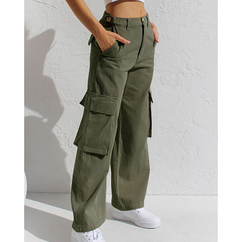 Women's Cargo Pants Slacks Streetwear Casual Full Length Natural Plain Pocket Comfy Outdoor Going out Grey Black White Blue Fall Regular Fit
