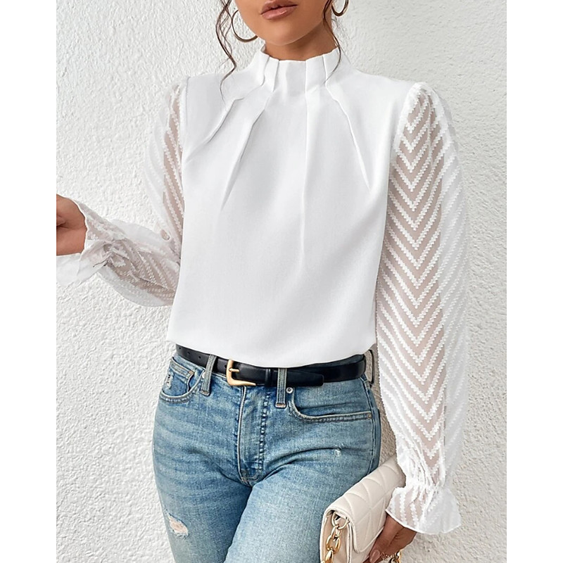 Women's Shirt Blouse Plain Modern Casual Long Sleeve High Neck Regular Tops Daily Going out Patchwork Black White Navy Blue Beige Fall