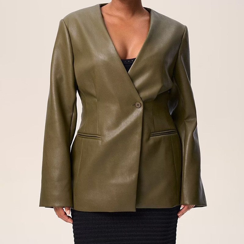 Women's Faux Leather Jacket Biker Jacket Comfortable Pocket Buttons Vintage Casual Plain Vacation Casual Daily Wear Going out Regular Long V Neck Regular Fit Long Sleeve Outerwear Black Green Fall