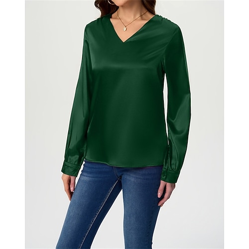 Per donna Abito Midi Abito in Raso Vestito da Festa Abito da Cocktail Moda Moderno Festa serale Feste Compleanno Vestibilità regolare Semplice Manica Lunga Scollo a V Nero Rosso Blu Reale Viola