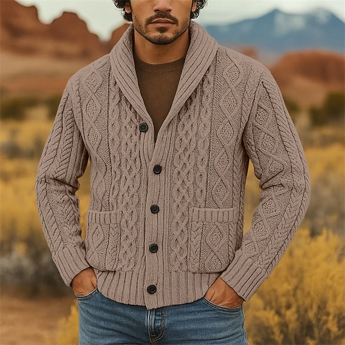 Per uomo Felpa Cardigan A Coste Treccia Maglia Top Regolari Lavorato a maglia Semplice Collo a scialle Vacanza Moda Casuale Abbigliamento quotidiano Abbigliamento Primavera Autunno Rosa Rosa S M L
