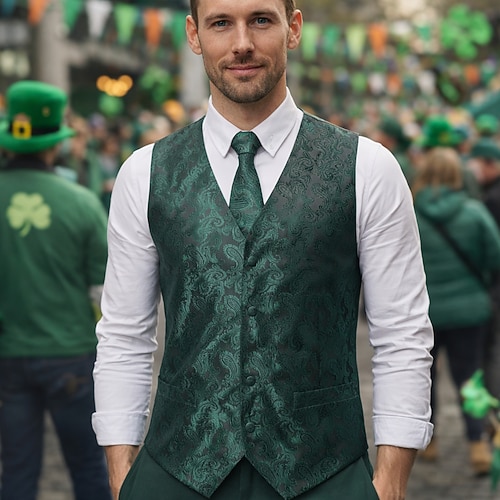 San Patrizio 2026 Retrò Vintage Rococò Gilet Lunghe Costume Per uomo Mascherata Giorno di San Patrizio Festa Sera Adulti Cravatta Gilet