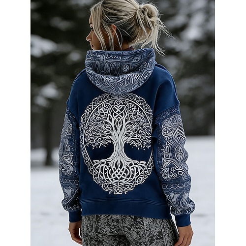 Per donna Felpa con cappuccio Grafico Geometrico Tribale Casual Manica Lunga Con Cappuccio Top Regolari Casuale Abbigliamento da sera Streetwear Stampato Blu Rosa Primavera Autunno Inverno
