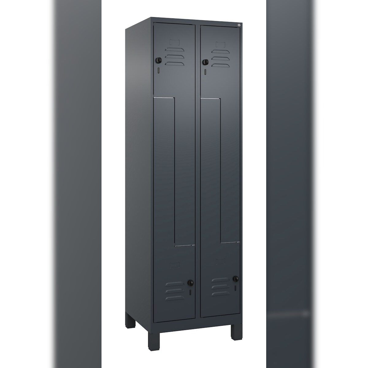 C+P Z-Spind Classic PLUS, Füßen, 4 Abteile, HxBxT 195x60x50cm, Sicherheitsdrehriegel, Anthrazit von PROREGAL