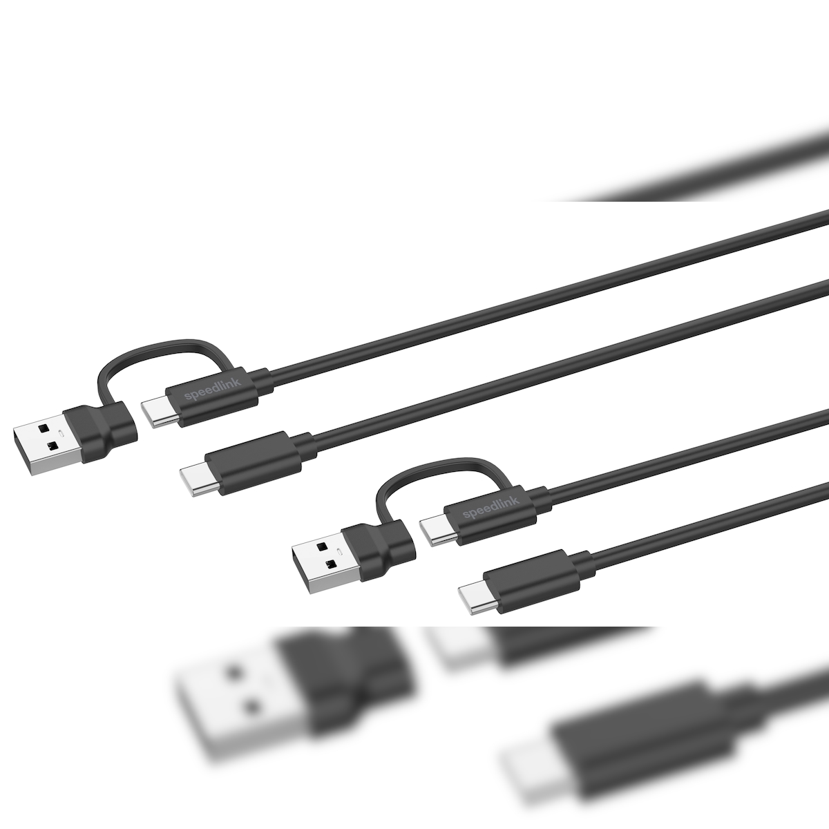SPEEDLINK STREAM Play & Charge USB-C/A to USB-C Cable Set - for PS5/Xbox Series X/S/Switch 2/Switch/OLED/Lite, black