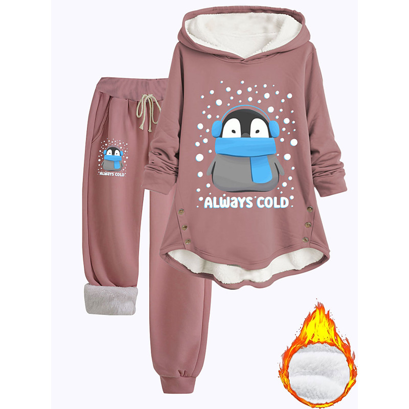 Women's Warm Daily Two Piece Sets Tracksuit Pants Sets Long Sleeve Hooded Graphic Animal Plain Drawstring Print Casual Daily Black Dark Pink Red Fall Regular Fit