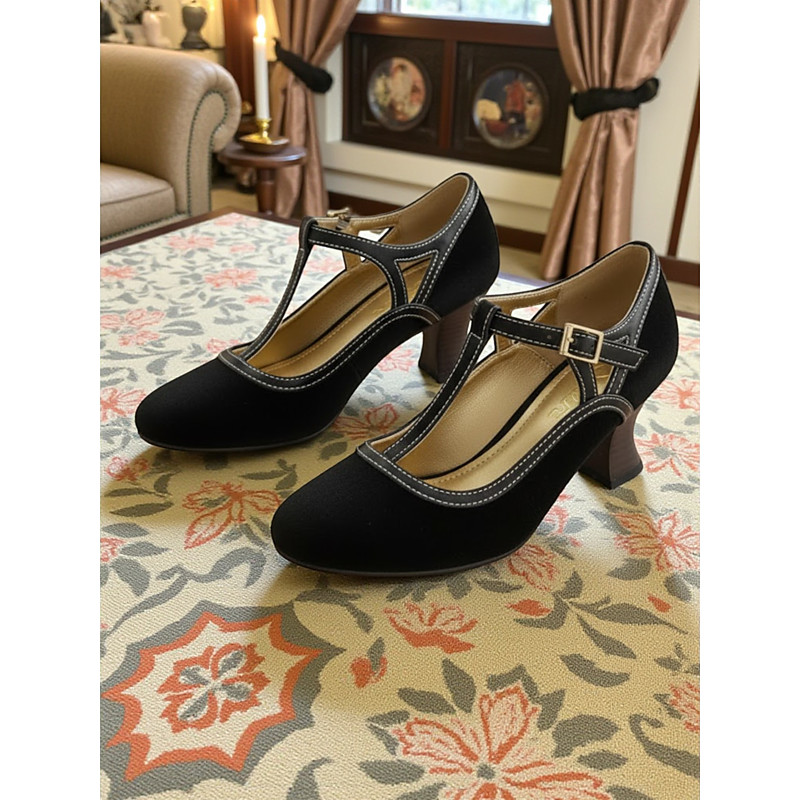 Women's Green T-Strap Mary Jane Heels, 1930s Edwardian Vintage Style Round Toe Mid-Heel Shoes for Retro Outfits, Formal Events and Gatsby Parties
