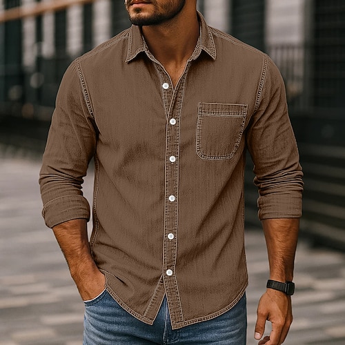 Per uomo Camicia Camicia casual Camicia vintage Camicia con Bottoni Nero Verde chiaro Vino Blu marino Blu Manica Lunga Semplice Bavero Casuale Uscire Tasca Abbigliamento Vintage Moda Retrò Vintage