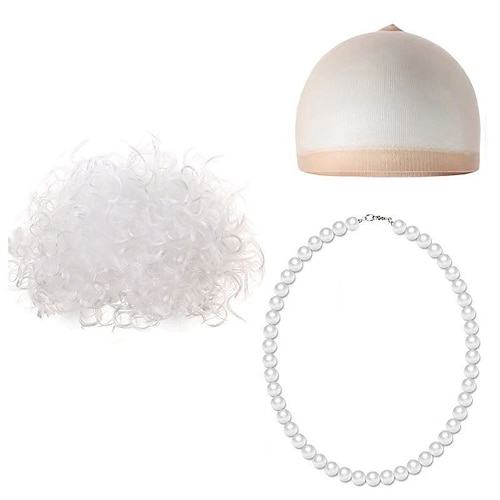 Kit di accessori per costume da vecchia signora: parrucca con chignon nero, cuffia per parrucca, collana di perle, perfetto per cosplay da nonna per donne e ragazze, costume da 100 giorni di scuola