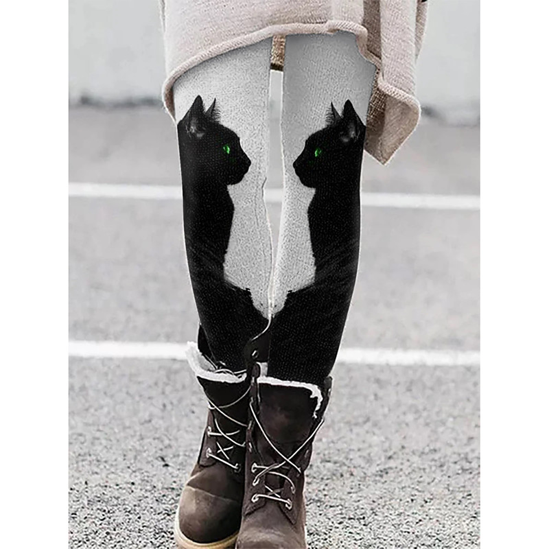 Women's Leggings Vacation Vintage Ethnic Style Ankle-Length High Waist Graphic Animal Cat 3D Print Quick Dry Breathability Soft Stretchy Outdoor Home Causal Black Grey Black White Gray Fall Winter