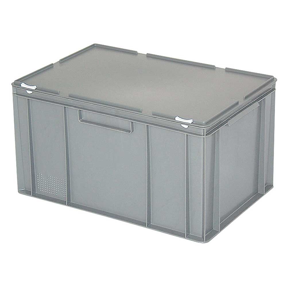 BRB Eurobehälter mit anscharniertem Deckel, Industriequalität, lebensmittelecht, LxBxH 600 x 400 x 330 mm, grau