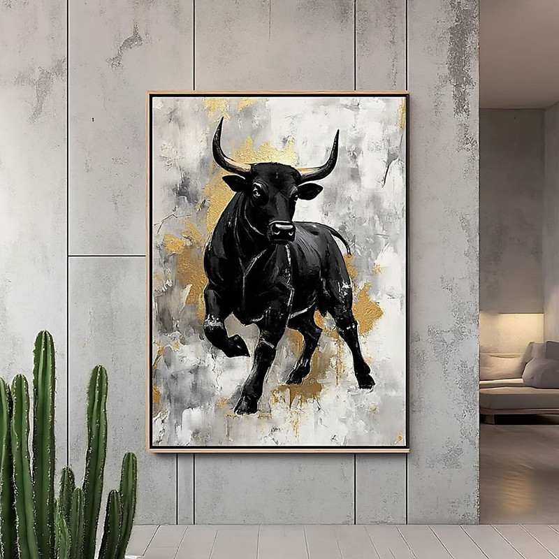Original Bull oil painting handmade Abstract Wall Art Bull Painting on Canvas Large hand painted Black Bull Painting on Canvas Bull Abstract Canvas Art Textured Wall Art