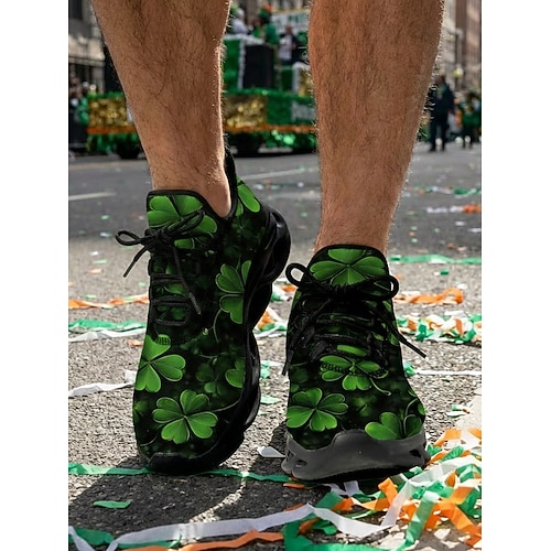 Sneakers da uomo con motivo paisley verde per il giorno di San Patrizio: scarpe sportive alla moda con comoda suola con plateau e cuscino d'aria, perfette per le sfilate eventi festivi
