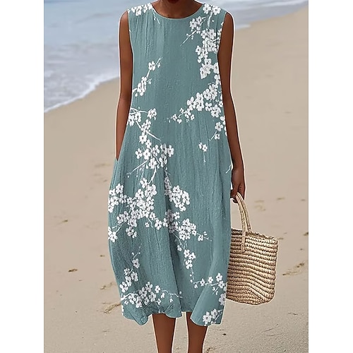 Per donna Abito Midi Abito a Tubino Vestito Estivo Abito a trapezio Vacanza Casual Boho Spiaggia Feste Vestibilità comoda Floreale Grafico Senza Maniche Girocollo Blu Viola Verde Cachi Estate