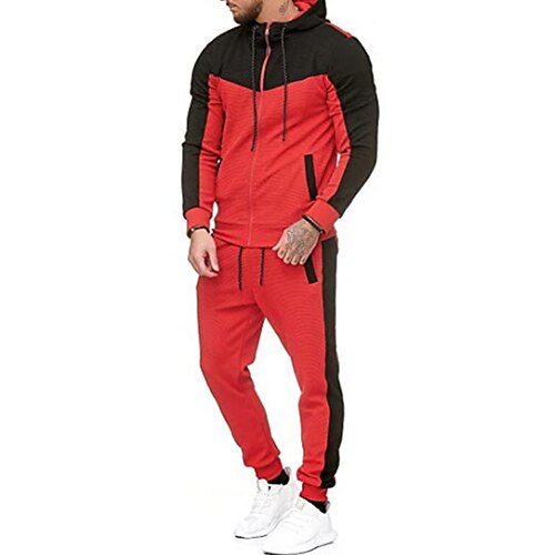 Per uomo Felpa con cappuccio Tuta da Ginnastica Felpa con cappuccio a zip intera Tuta da Allenamento Nero Rosso Blu marino Blu Reale Grigio chiaro Con Cappuccio Blocco di colori 2 Pezzi Sport