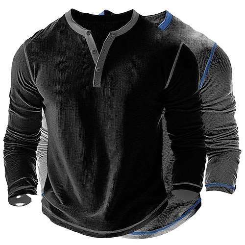 Per uomo Maglietta Maglia Henley Maglietta a Maglia Waffle Camicia a Maniche Lunghe Manica Lunga Blocco di colori Tinta unita Moda Designer Essenziale 2 Pezzi Confezione multipla Henley Vacanza
