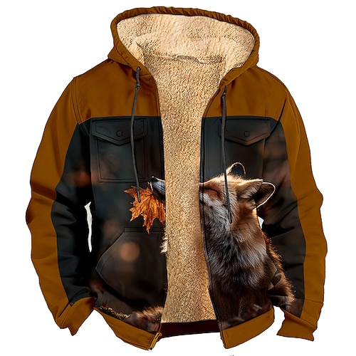Per uomo Volpe Pile Felpa con Cappuccio Giacca di pelle Felpa Moda Cool Quotidiano Vintage Retrò Con Cappuccio All'aperto Regalo Caccia Blu Marrone Marrone 2 Cerniera Tasca Autunno Inverno progettista