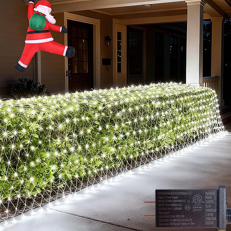 Christmas Net Lights Connectable Waterproof String Lights Clear Wire with 8 Modes Low Voltage Safe Plug Indoor/Outdoor Courtyard Lawn Party Wedding Festival Tree Decorative Light Props