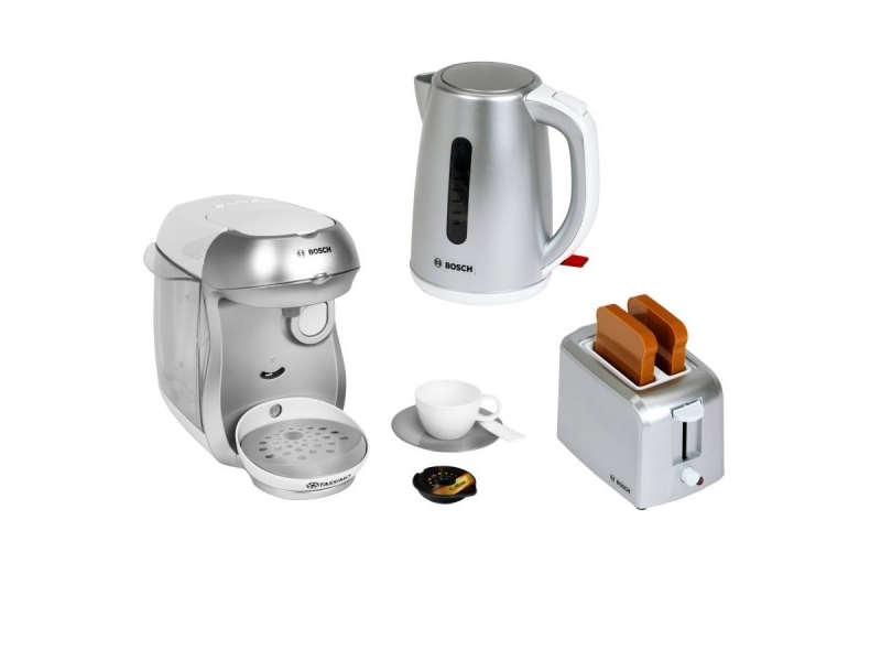 Klein Frühstücksset Bosch Silber Spielzeug Wasserkocher Toaster Kaffeemaschine für Kinder ab 3 Jahren