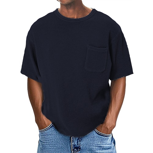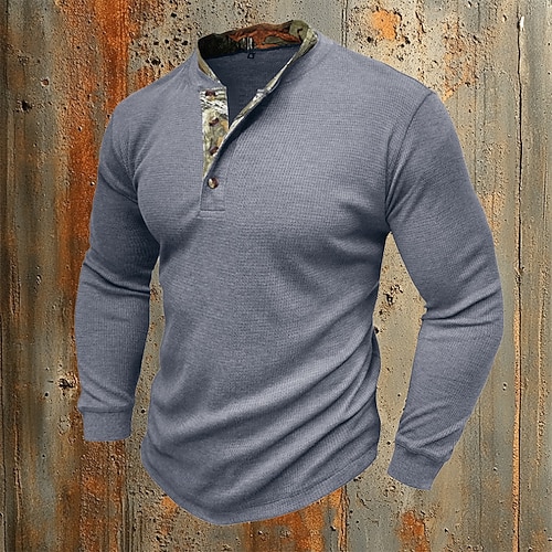 Herren Waffel-Henley-Hemd T-Shirt Langarm Henley Winter Herbst Winter Ganzjahres Einfarbig Einfach Mode Designer Lässig Farbblock Knöpfe Outdoor Lässig Täglich Schwarz Marineblau Braun Top T-Shirt