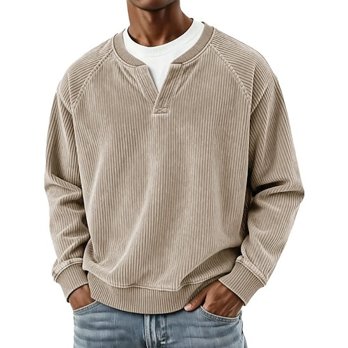 Herren T Shirt T-Shirt Langarmshirt Langarm Viertelreißverschluss Frühling Herbst Einfarbig Vintage Mode Streetwear Reißverschluss Lässig Outdoor Urlaub Schwarz Rosa Marineblau Top T-Shirt für Herren