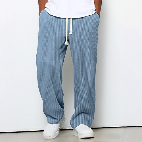 Herren Jogginghose mit weitem Bein Hose Cordhose Baggy-Hosen Freizeithose Kordelzug Elastischer Bund Einfach Gestreift Feuchtigkeitsableitend Atmungsaktiv Volle Länge Sport im Freien Lässig Täglich