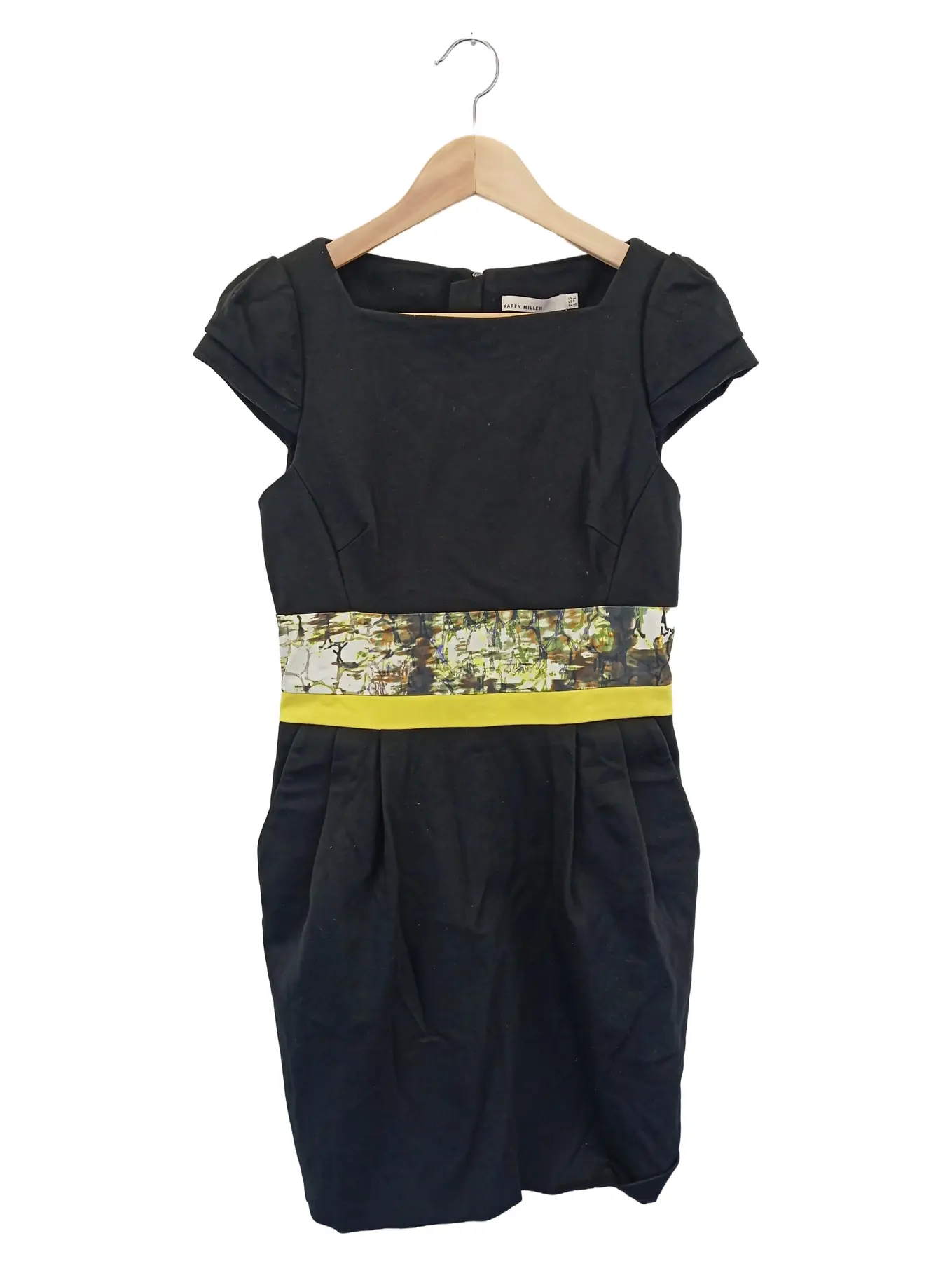 KAREN MILLEN Etuikleid Gr. 40 Schwarz Gelb Midi Business Party