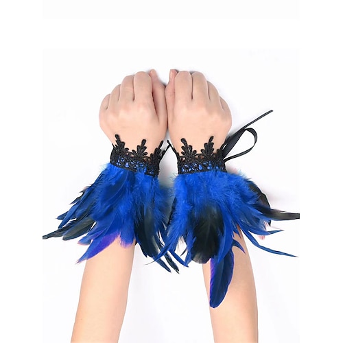 polsini da polso gotici con piume per Halloween da donna, pizzo nero e bracciale con piume colorate, accessori per costumi per feste, cosplay e mascherate
