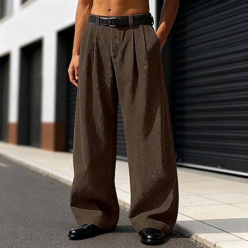 Per uomo Pantaloni Pantaloni Eleganti Pantaloni in velluto a coste Pantaloni Larghi Tasca Frontale Semplice Comodità Lunghezza intera All'aperto Casa Feste Vacanza Moda Vestibilità comoda Nero Cachi