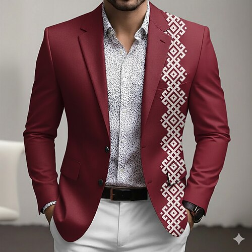Herren Grafik Blazerjacke Mantel Mode Bequem Atmungsaktiv Künstlerisch Lässig Lässig Täglich Party-Abendmode 3D-Druck Knöpfe Mehrere Taschen Frühling Herbst Winter Fallendes Revers Langarm Blau Rote