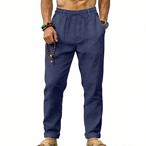 Per uomo Pantaloni di Lino Pantaloni Pantaloni casual Pantaloni Estivi Coulisse Elastico in vita Semplice Comodità Traspirante Lunghezza intera Casuale Quotidiano All'aperto Vacanza Moda Blu Nero