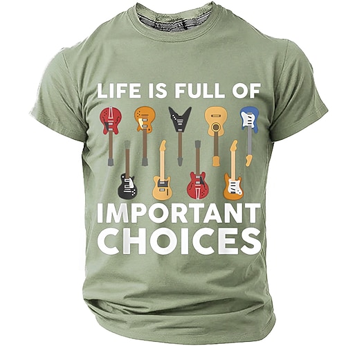 La vita degli uomini è piena di scelte importanti collezione di chitarre maglietta grafica divertente sarcastica chitarrista musicista regalo nero vestibilità regolare abbigliamento firmato