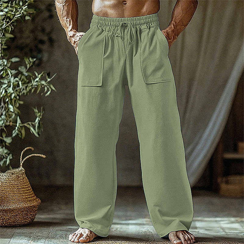 Men's Linen Pants Trousers Beach Pants Pocket Elastic Waist Drawstring Plain Comfort Breathable Vacation Daily Holiday Hawaiian Boho Black White