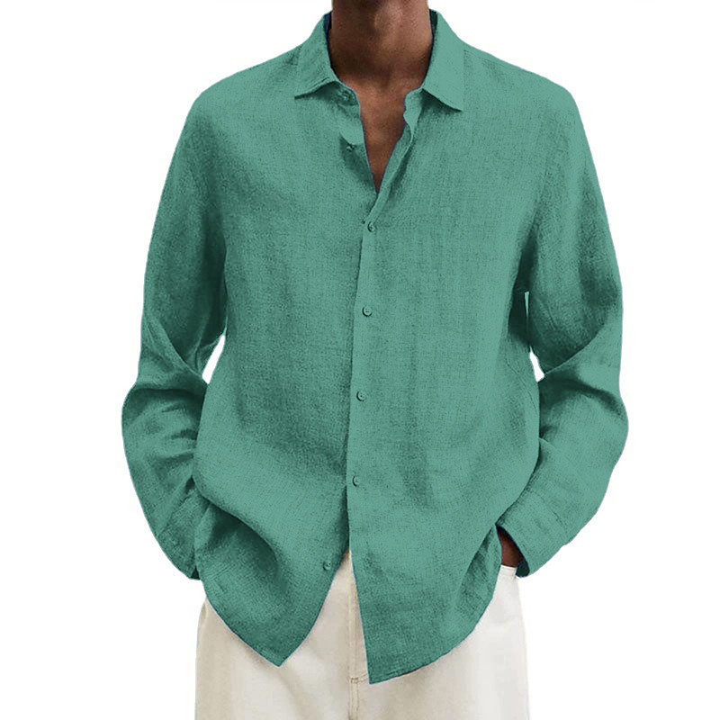 Men's Cotton Linen Shirt Black Pink Navy Blue Long Sleeve Plain Turndown Vacation Holiday Clothing Apparel Polyester Fashion Casual