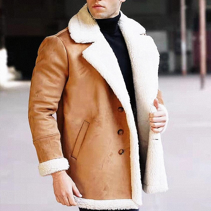 Men's Winter Jacket Fleece Jacket Sherpa Jacket Daily Wear Basic Spring Fall Winter Solid / Plain Color Casual Lapel Regular Black Camel Jacket
