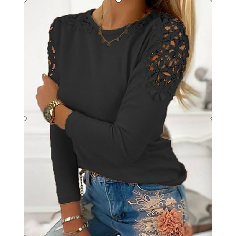 Women's Blouse Plain Elegant Stylish Casual Long Sleeve Crew Neck Regular Tops Daily Holiday Going out Eyelet Black Green Gray Fall Winter
