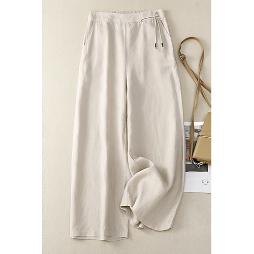 Per donna Taglie Forti 100% cotone Casual Quotidiano Lunghezza alla caviglia Vita Alta Tinta unica Coulisse Gamba larga Comodo Asciugatura Rapida Morbido Micro-elastico Nero Bianco Blu marino scuro